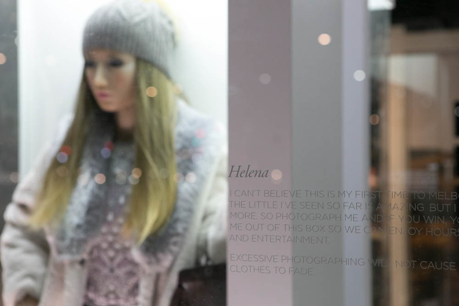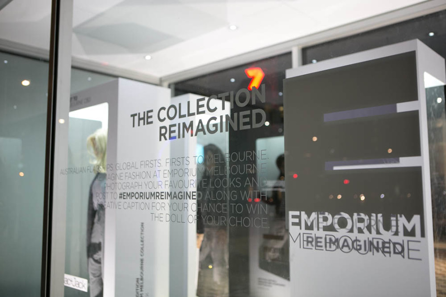 We reimagined a fashion collection for Emporium Melbourne retailers. This experiential event involved customising six life-size 'Fantasy' dolls, styling them in the latest runway looks, complete with wigs and make-up. Each doll was rigged inside oversized 'Barbie' style boxes. The dolls were then revealed in a display case outside the Virgin Fashion Festival at Melbourne's Docklands. By hashtagging #emporiumreimagined together with a clever caption, people entered into a competition to win one of the dolls.
